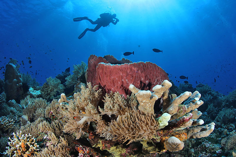 Sometimes, you’re diving very shallow reefs that are packed with colorful critters. Other times, you’re diving along steep walls, looking for reef dwellers and pelagic visitors (you can spot hammerheads and silvertip sharks at the offshore dive sites). Undisturbed by tourism, the coral reefs are just spectacular.