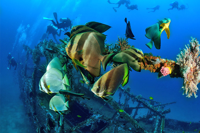 Puerto Galera has a bit of everything: wall diving with moderate drift, shore diving in sheltered coves, sea turtles, swim-throughs, and schooling fusiliers. Here’s your opportunity to dive the remnants of Spanish-era galleons — sunken treasures are occasionally found among the wreckage.