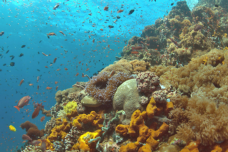 There’s beautiful house reefs in Puerto Galera, which have gentle slopes and are well-protected against strong currents. Further from shore, you’ll get lovely walls — some of which are topped by fields of table coral — with crevices and swim-throughs to explore. Verde Island is one of the most popular dive sites, with huge walls, overhangs, and excellent viz.